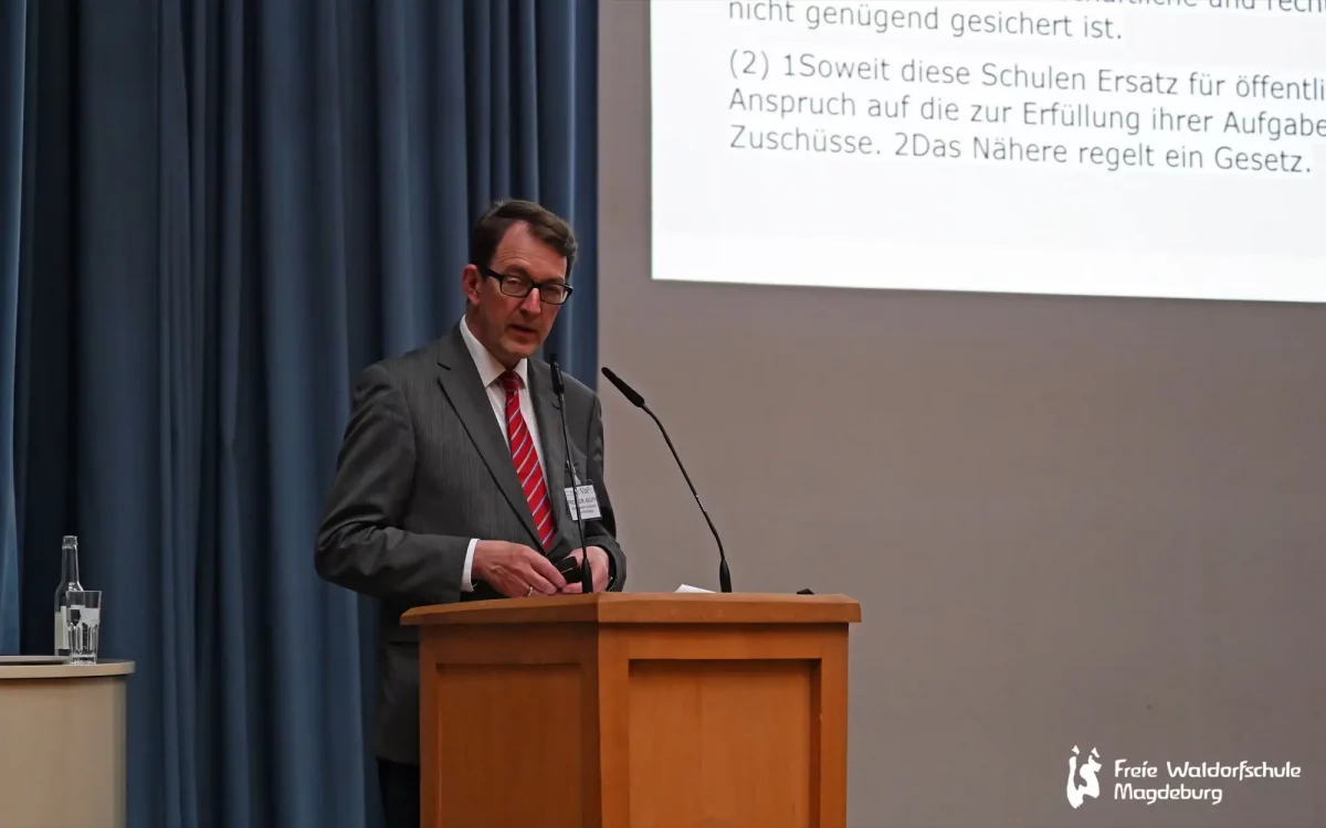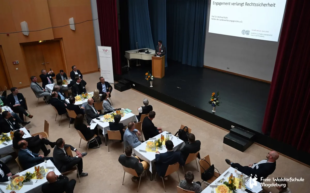 An das Grußwort von Ministerin Dr. Lydia Hüskens (Landesvorsitzende der FDP) schloss sich ein Impulsreferat von Prof. Winfried Kluth (Richter am Landesverfassungsgericht Sachsen-Anhalt a.D., Martin-Luther-Universität Halle-Wittenberg) zum Thema „Engagement verlangt Rechtssicherheit: Kritische Anmerkungen zum Umgang des Landes Sachsen-Anhalt mit Schulen in freier Trägerschaft“ an.