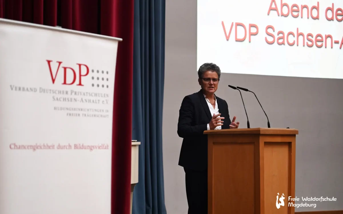 Heute wiederholte sich mit dem jährlich stattfindenden „Parlamentarischen Abend“ des VDP (Verband Deutscher Privatschulen) Sachsen-Anhalt e.V. an unserer Schule eine schöne Tradition. Der VDP Sachsen-Anhalt lädt jedes Jahr Repräsentant:innen einer bestimmten demokratischen Partei ein, um mit ihnen gemeinsam aktuelle bildungspolitische Themen zu besprechen.