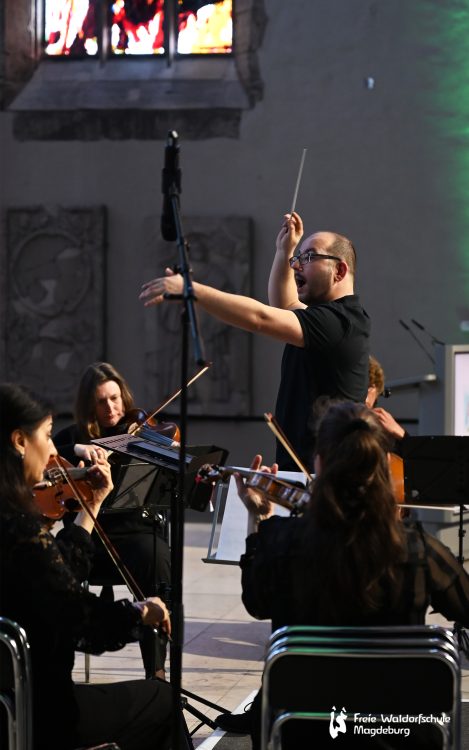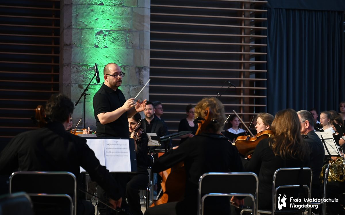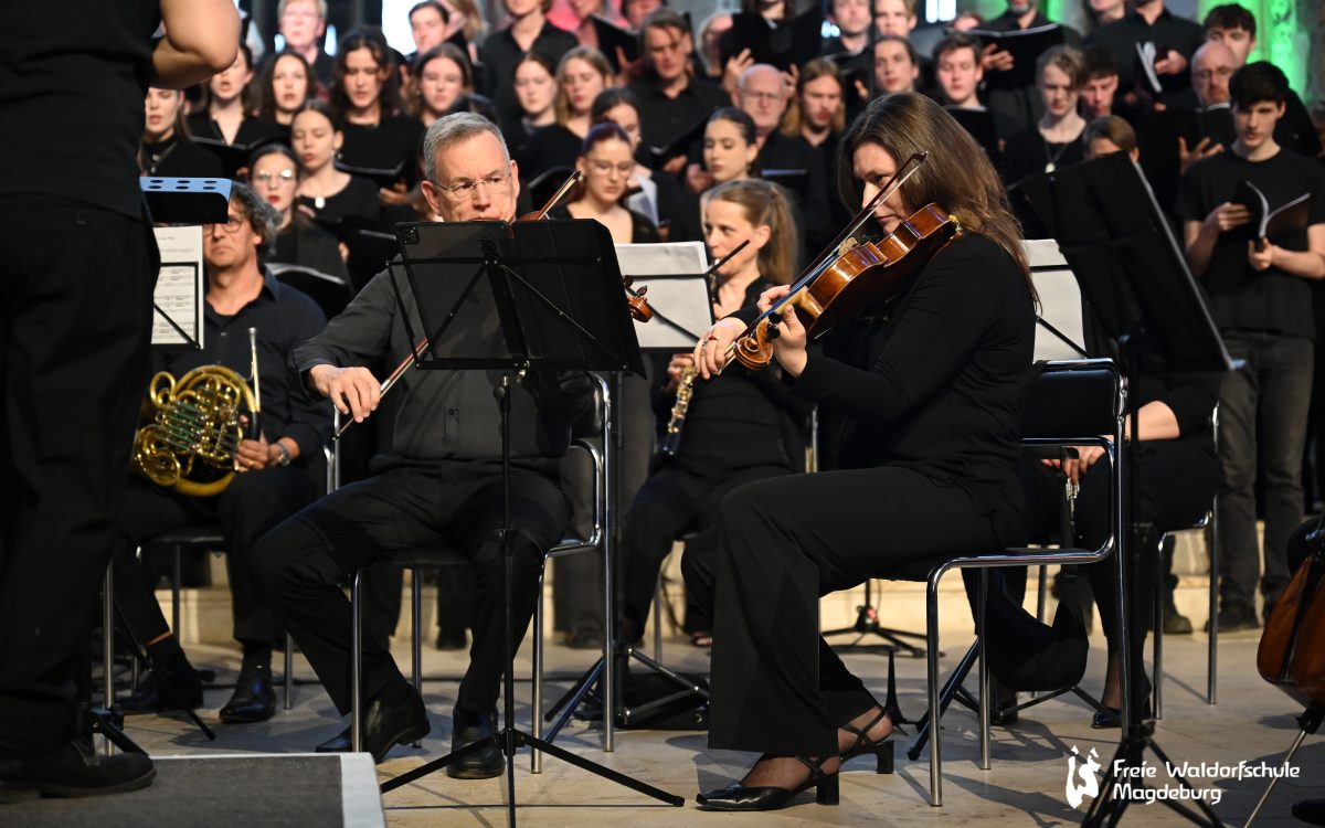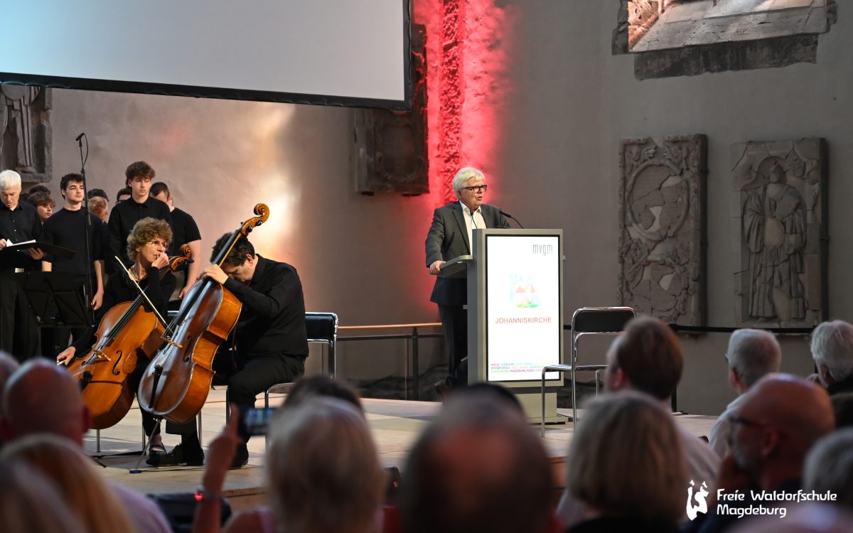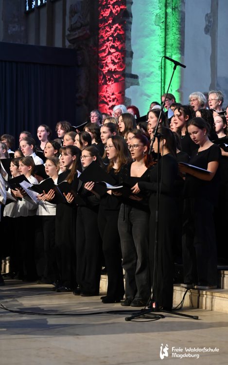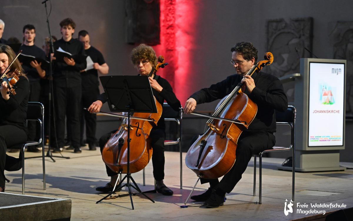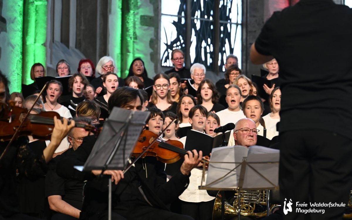 Gemeinsam mit dem „Friedensforum Johanniskirche 1631-2031“ lud die Freie Waldorfschule Magdeburg am Freitag, dem 10. Mai 2024 um 16 Uhr zur Friedensmesse „Dem Frieden in der Welt“ in die Johanniskirche Magdeburg ein. Im Rahmen des Tages des Gedenkens an die Zerstörung Magdeburgs 1631 übernahmen die Chöre der Freien Waldorfschule mit der Friedensmesse, neben der Ökumenisches Gebet und der Magdeburger Rede über den Frieden, einen Hauptprogrammpunkt. Auch Oberbürgermeisterin Simone Borris ließ es sich nicht nehmen, die Friedensmesse mit einem Grußwort zu eröffnen.