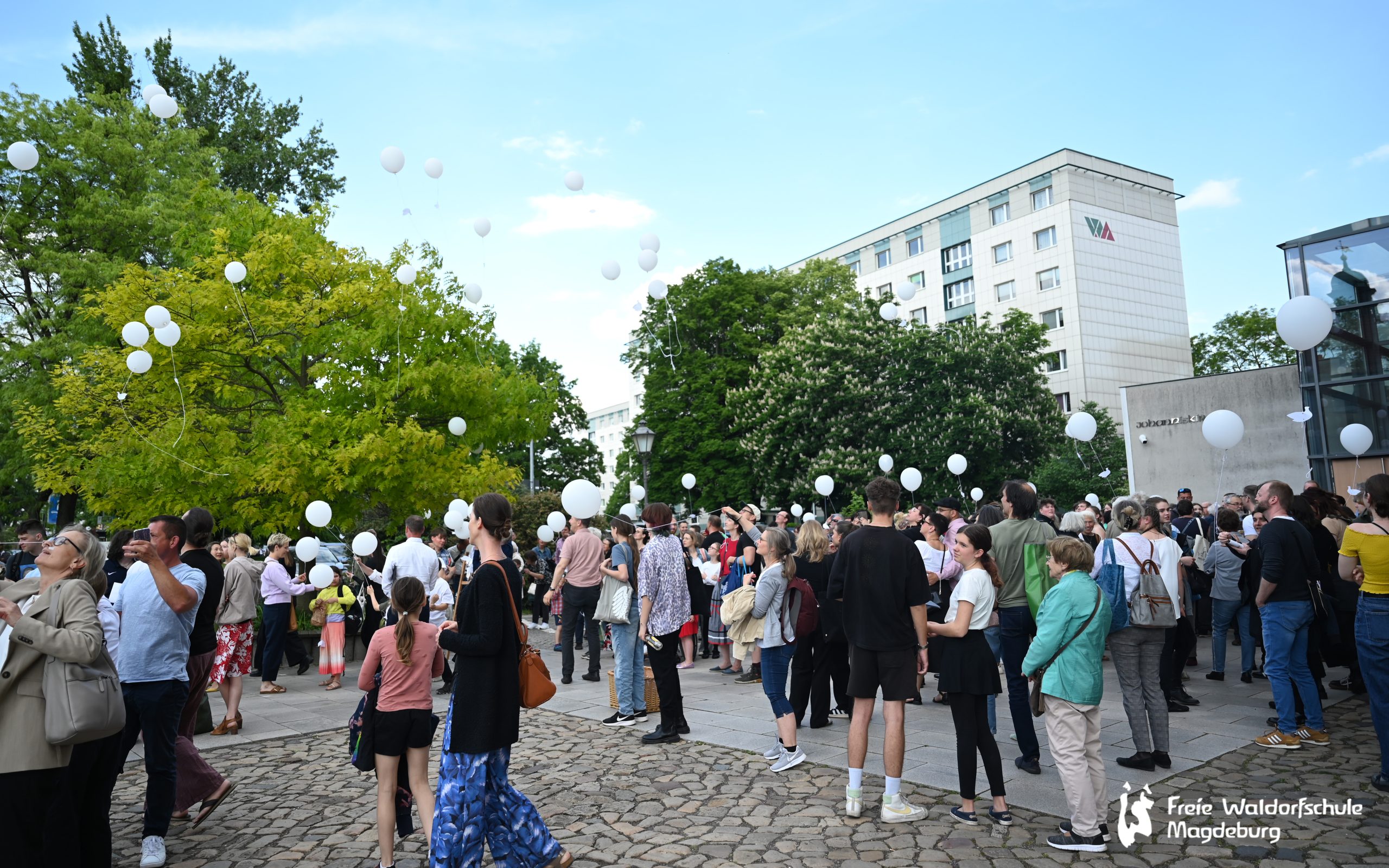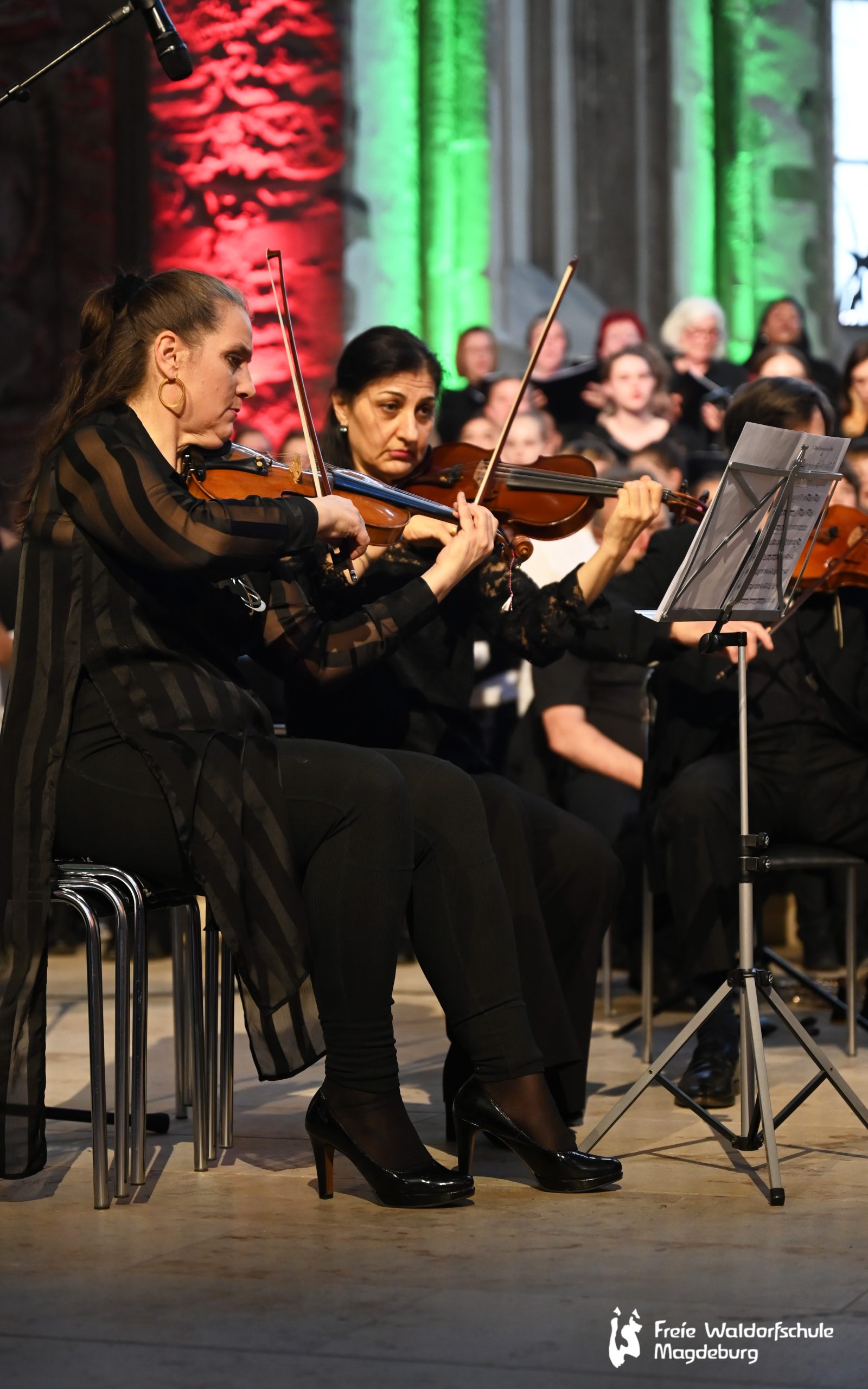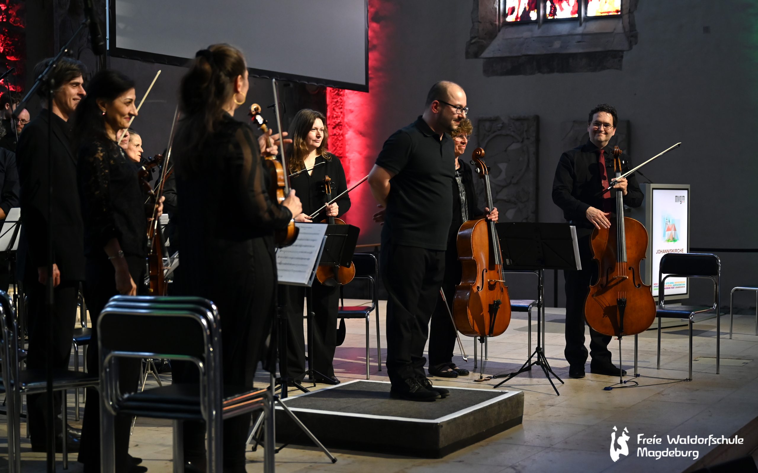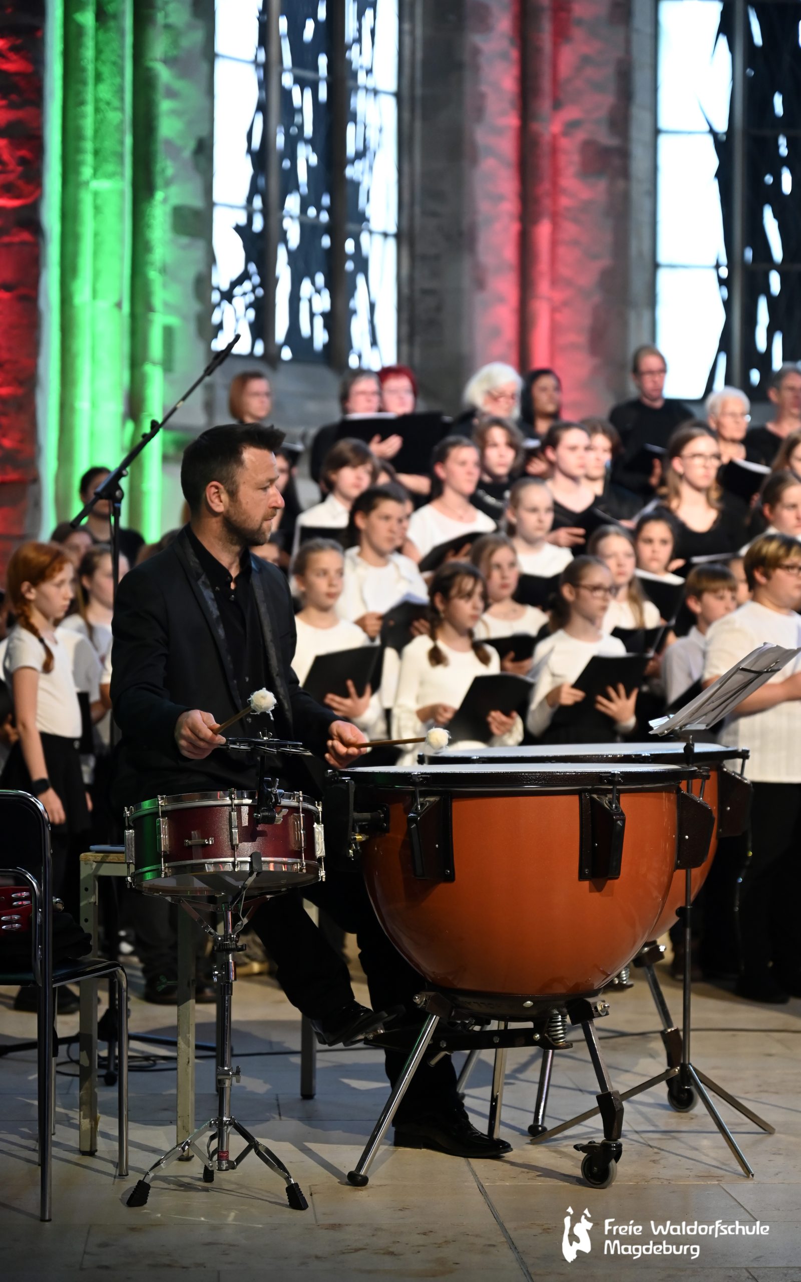 Gemeinsam mit dem „Friedensforum Johanniskirche 1631-2031“ lud die Freie Waldorfschule Magdeburg am Freitag, dem 10. Mai 2024 um 16 Uhr zur Friedensmesse „Dem Frieden in der Welt“ in die Johanniskirche Magdeburg ein. Im Rahmen des Tages des Gedenkens an die Zerstörung Magdeburgs 1631 übernahmen die Chöre der Freien Waldorfschule mit der Friedensmesse, neben der Ökumenisches Gebet und der Magdeburger Rede über den Frieden, einen Hauptprogrammpunkt. Auch Oberbürgermeisterin Simone Borris ließ es sich nicht nehmen, die Friedensmesse mit einem Grußwort zu eröffnen.