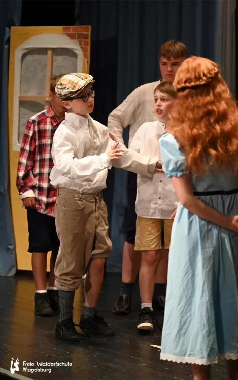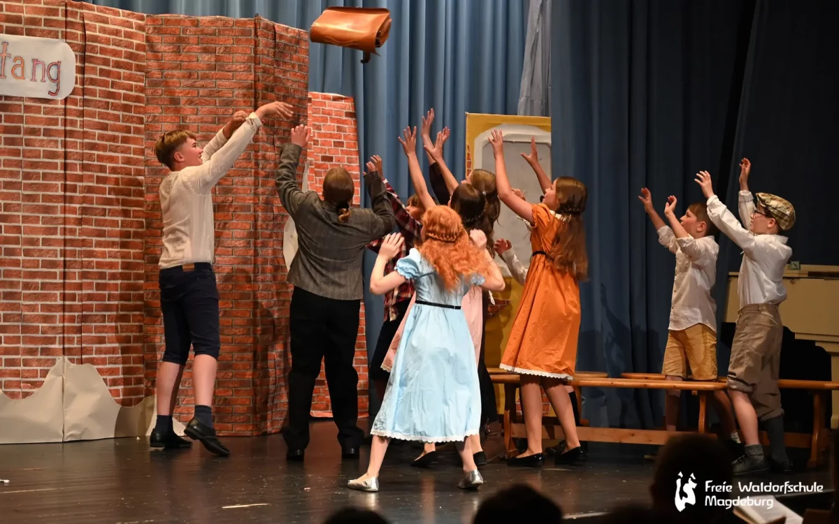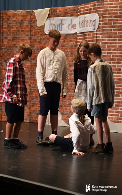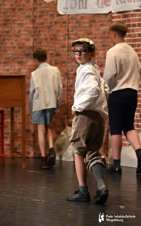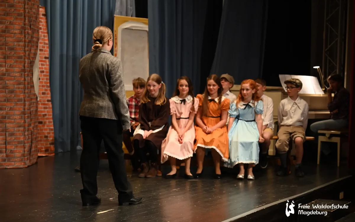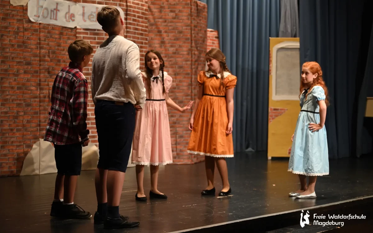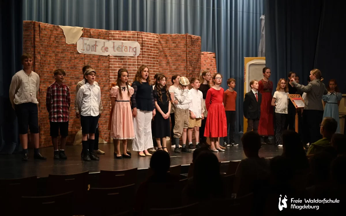 Auch die Klasse 5B führte heute Abend ein Singspiel auf. „Pedell“ spielt in Frankreich, 1949. Der arbeitslose Musiker Clément Mathieu bekommt eine Anstellung als Erzieher in einem Internat für schwer erziehbare Kinder. Von der Härte des Schulalltags betroffen, beginnt er, mit dem Zauber der Musik in das Dasein der Schüler:innen einzugreifen. Nach anfänglichen Schwierigkeiten gelingt dem einfühlsamen Pädagogen das kleine Wunder, das Vertrauen seiner Schützlinge zu gewinnen.