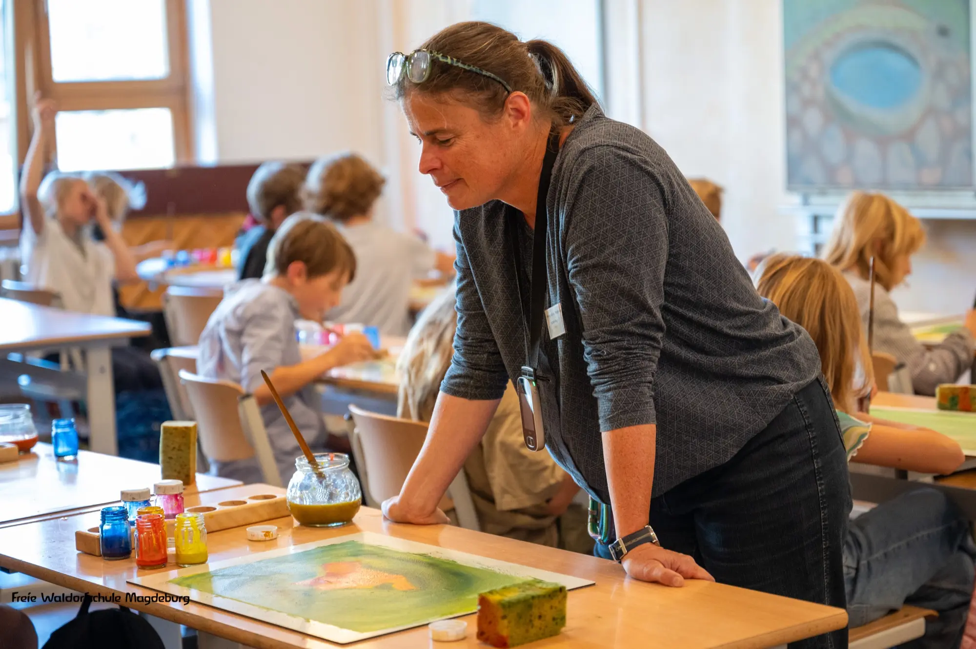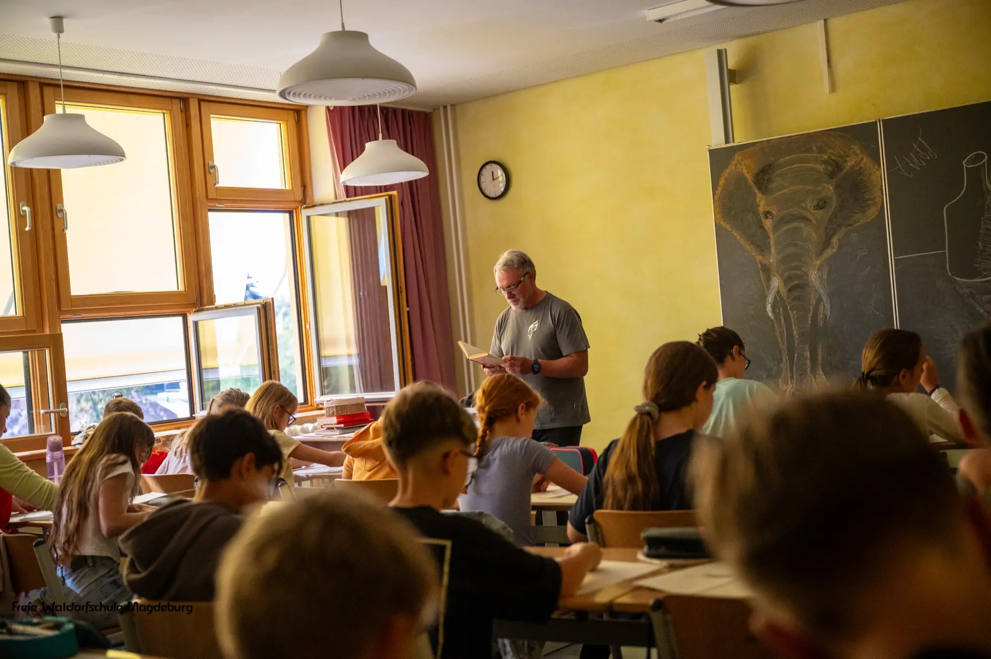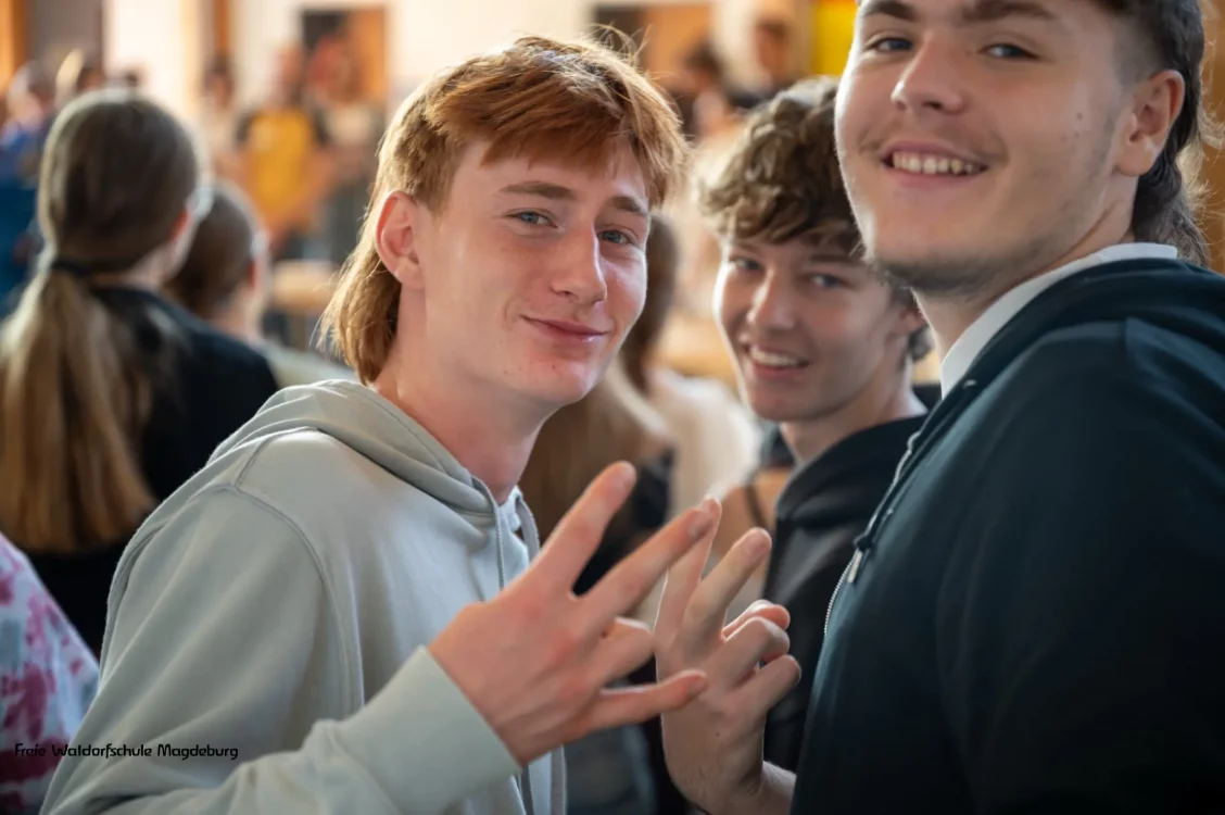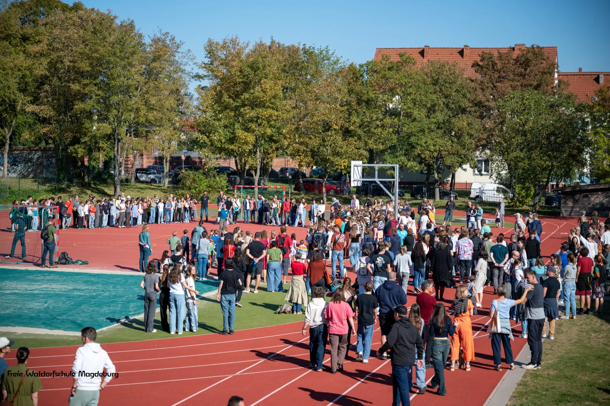 Am vergangenen Samstag begrüßten wir viele Besucher:innen auf unserem Schulgelände zum Tag der offenen Tür. Bei bestem Spätsommerwetter konnte man einen Eindruck von unserer Schule gewinnen. Unsere Besucher:innen hatten die Möglichkeit, am Unterricht teilzunehmen und zuzusehen, wie unsere Kinder Getreide vom Dreschen bis zum fertigen Brötchen verarbeiteten. Gemeinsam trafen wir uns auf dem Sportplatz, um unser Schullied zu singen. Die 9., 10. und 11. Klassen präsentierten ihre Projektwochen und vieles, vieles mehr. Schulführungen über das gesamte Gelände und durch alle Gebäude vermittelten einen Eindruck davon, was zukünftige Schüler:innen an unserer Schule erwartet.