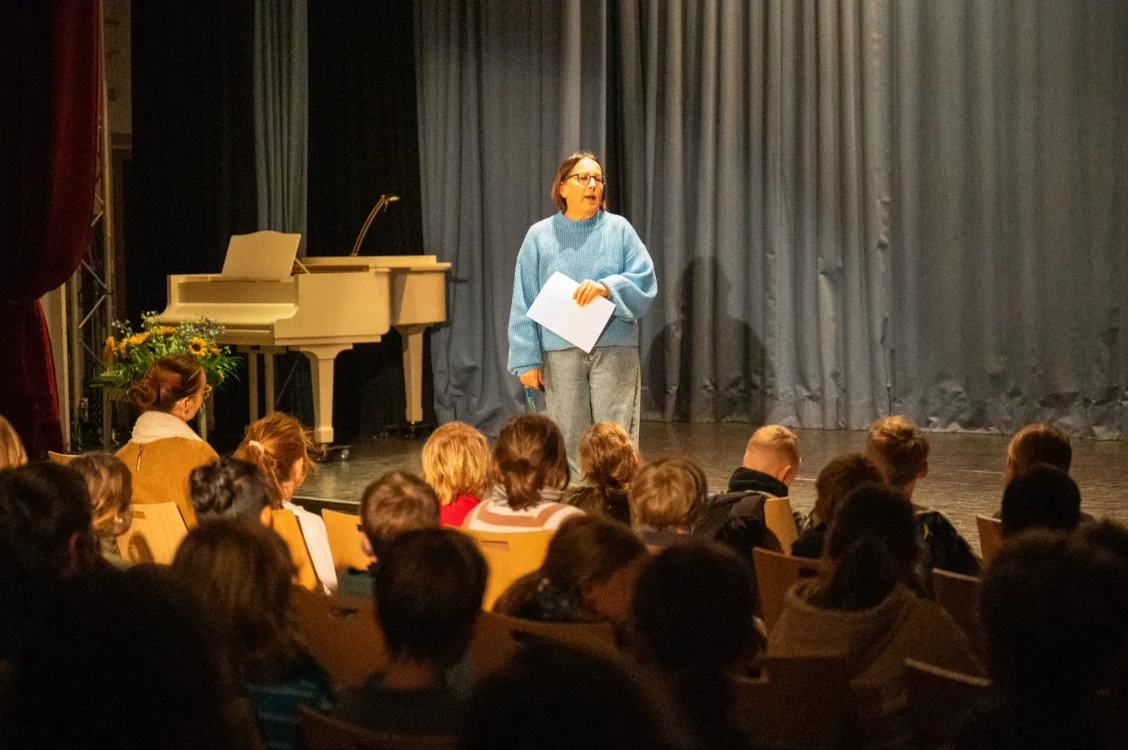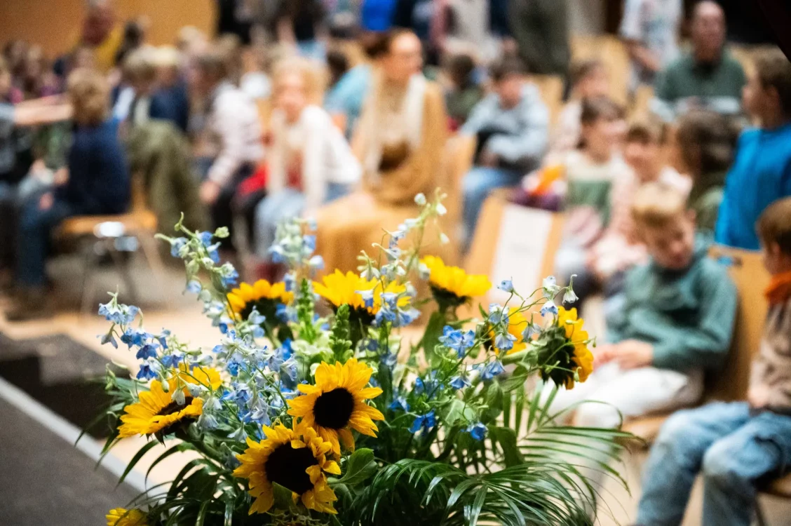 Heute früh fand unsere erste Monatsfeier in diesem Schuljahr statt. Einander präsentierten unsere Schüler:innen sich Gedichte, Märchen, Lieder und Eurythmiestücke, die sie in den letzten Wochen im Unterricht einstudiert hatten.