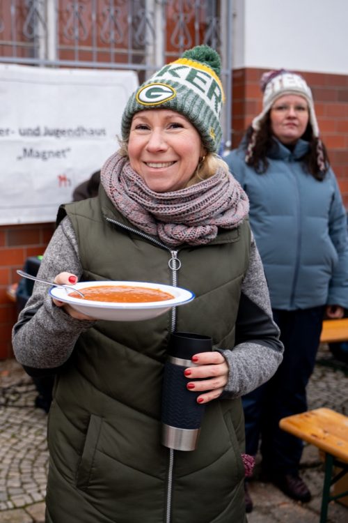 Dank unseres großartigen Küchenteams konnten wir 20 Liter köstliche Tomatensuppe kostenlos an all jene ausgeben, die sich trotz Minusgraden und dichtem Nebel zu uns gesellt haben.