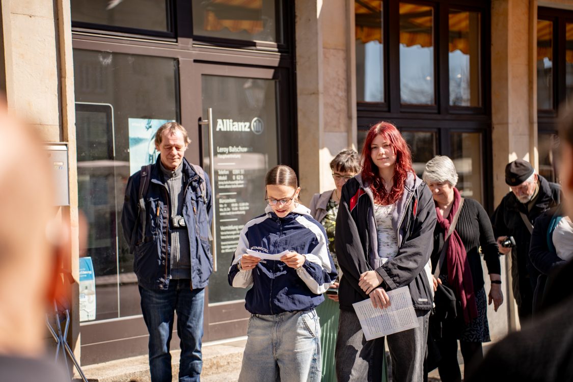 Auch die Freie Waldorfschule Magdeburg beteiligte sich an dem Gedenkprojekt: Die AG Schule ohne Rassismus – Schule mit Courage hatte in der Vergangenheit Spenden für einen Stolperstein gesammelt. Gestern wurde der Stein feierlich verlegt – er erinnert an Ruth Borman (verh. Yeshurun) und liegt auf dem Alten Markt 10, direkt neben dem ebenfalls neu verlegten Stein für Abraham Alber Borman.