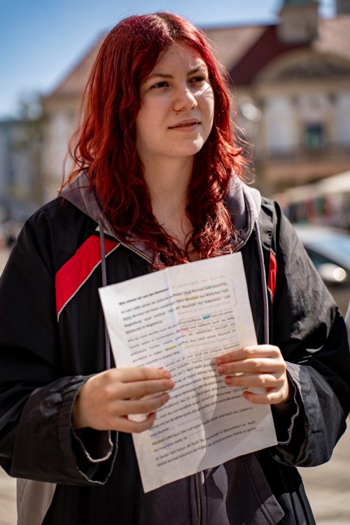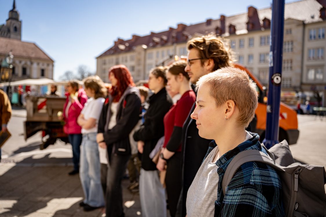 Mitglieder der Schüler:innen-AG nahmen gemeinsam mit weiteren Unterstützern an der Zeremonie teil.
