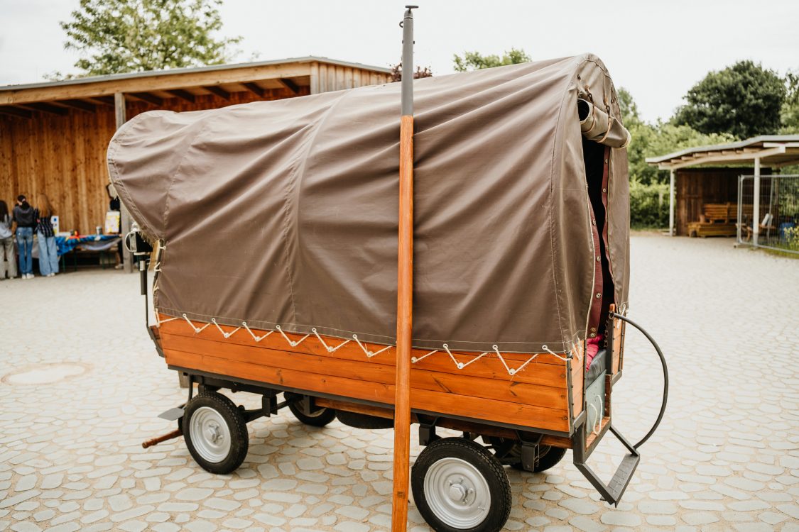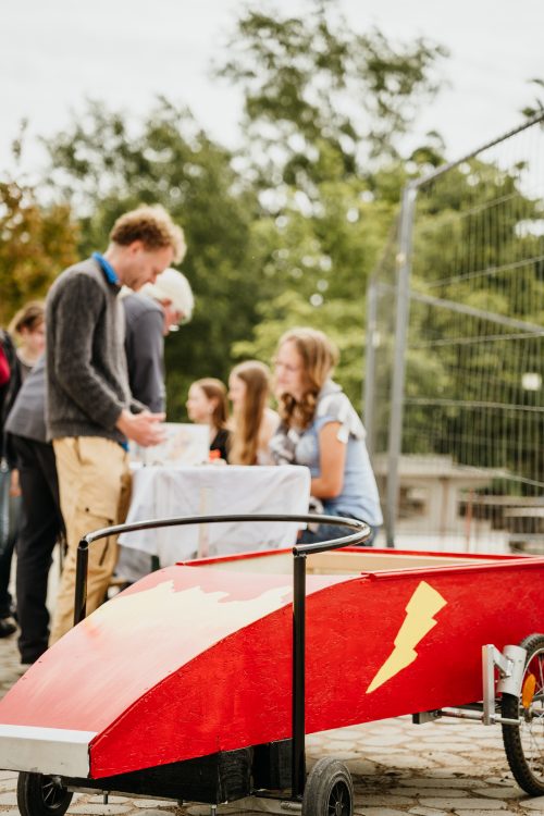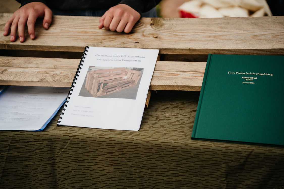 Am 27. Mai 2025 präsentierte die Klasse 8A ihre Jahresarbeiten – dieses Mal unter freiem Himmel auf dem Schulhof. Kein Wunder, denn einige der Exponate brauchten richtig viel Platz: ein selbstgebauter Steilsprung fürs Dressurreiten, Palettenmöbel, ein eigens konstruierter Grill oder ein aufwendig überholter Kutschwagen konnten dort bestens in Szene gesetzt werden.