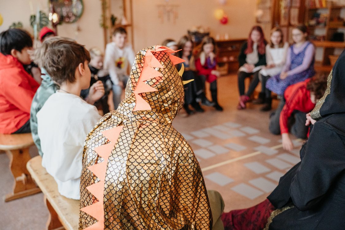 🎭🎉 Heute wurde von 8 bis 12 Uhr in Unter- und Mittelstufe gefeiert: Märchenfiguren, Dinos, Handwerker, Zirkus und Party – überall wurde gebastelt, erzählt, getanzt und gelacht.