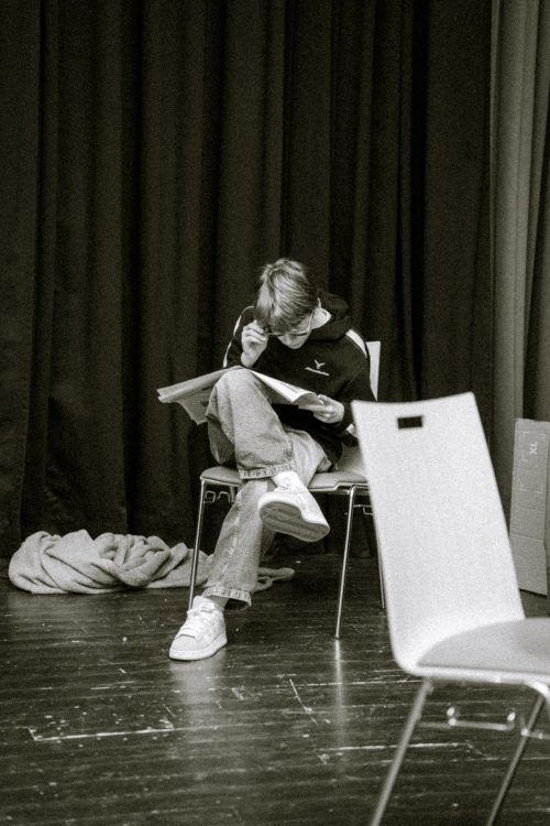 Die Klasse 8A probt seit gestern im Ernst-Bindel-Saal ihr Klassenspiel „Die verschwundene Miniatur“ – frei nach Erich Kästner. Im Mittelpunkt steht der gutmütige Berliner Fleischermeister Oskar Külz, der im Urlaub in Kopenhagen in einen Kriminalfall gerät: Eine Bande deutscher Kunsträuber hat es auf eine wertvolle Holbein-Miniatur abgesehen. Gemeinsam mit Irene Trübner und dem geheimnisvollen Rudi Struve beginnt eine turbulente Reise voller Missverständnisse, Verwechslungen und wechselnder Allianzen – ein Wettlauf um Original und Fälschung.
